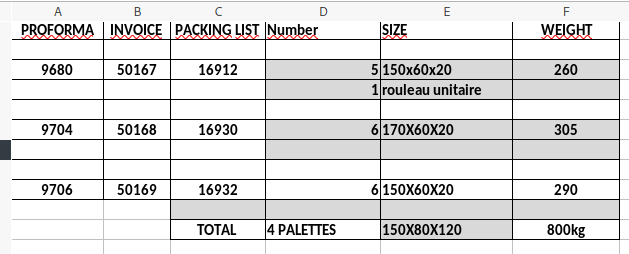 - Les dimensions et le poids de la marchandise différent sur le document "Liste Colisage"