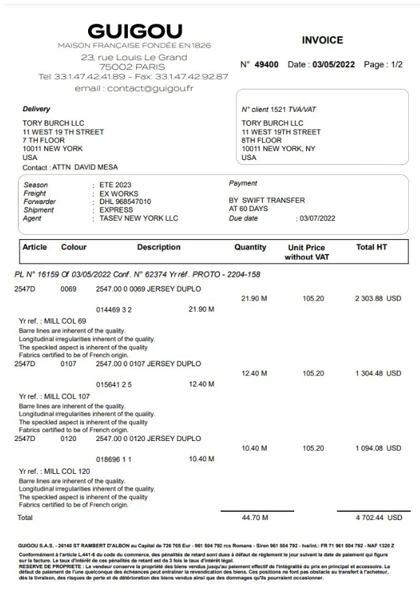 Un visuel de facture identique avec des pièces jointes et des méta données différentes.